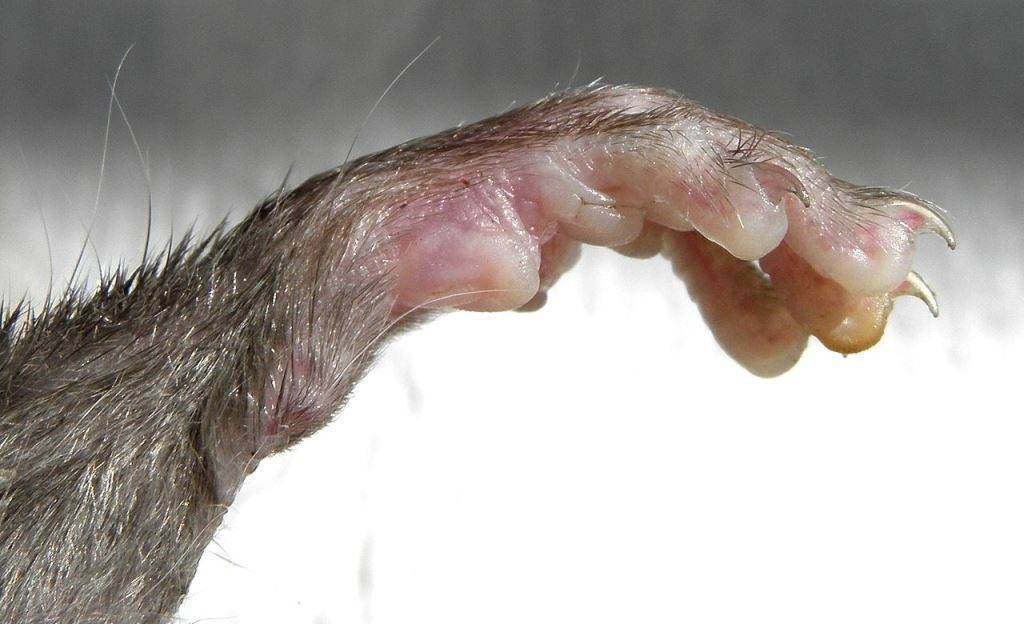 На лапках отчетливо заметны отдельные пальцы, тогда как у мышей лапки больше приспособлены для карабканья по вертикальным стенам или веткам.