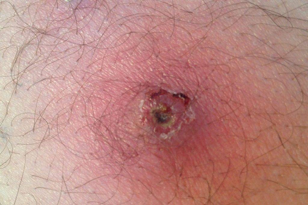 Инфицированная шишка от укуса клеща