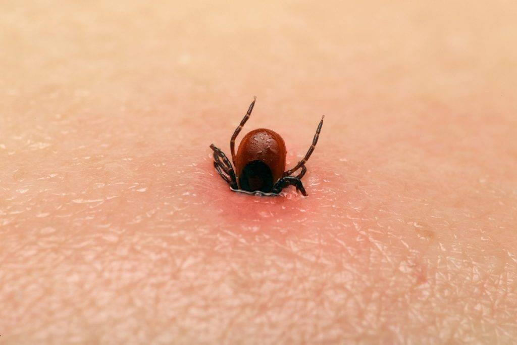 Клещ впивается в кожу
