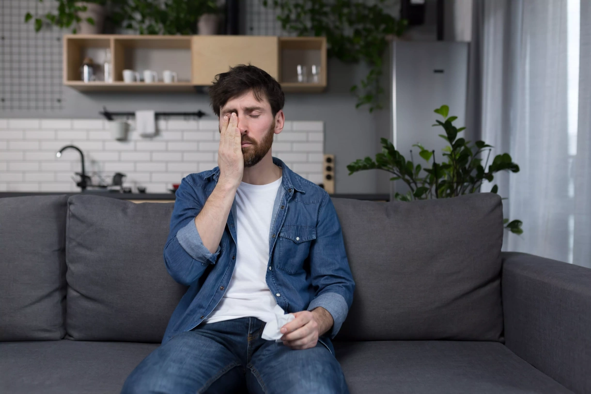 - слезоточивость, заложенность и прозрачные выделения из носа;