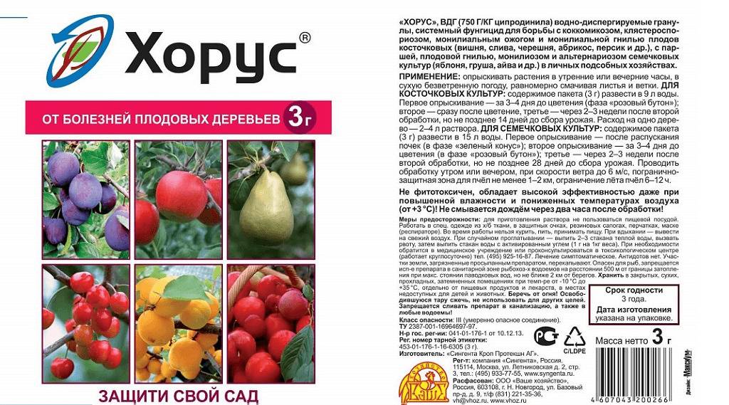 Ниже будет рассказано о составе препарата, приведена инструкция по применению Хоруса для плодовых деревьев и кустарников. В статье также можно найти информацию о дозировке Хоруса и совместимости препарата с другими средствами для обработки.
