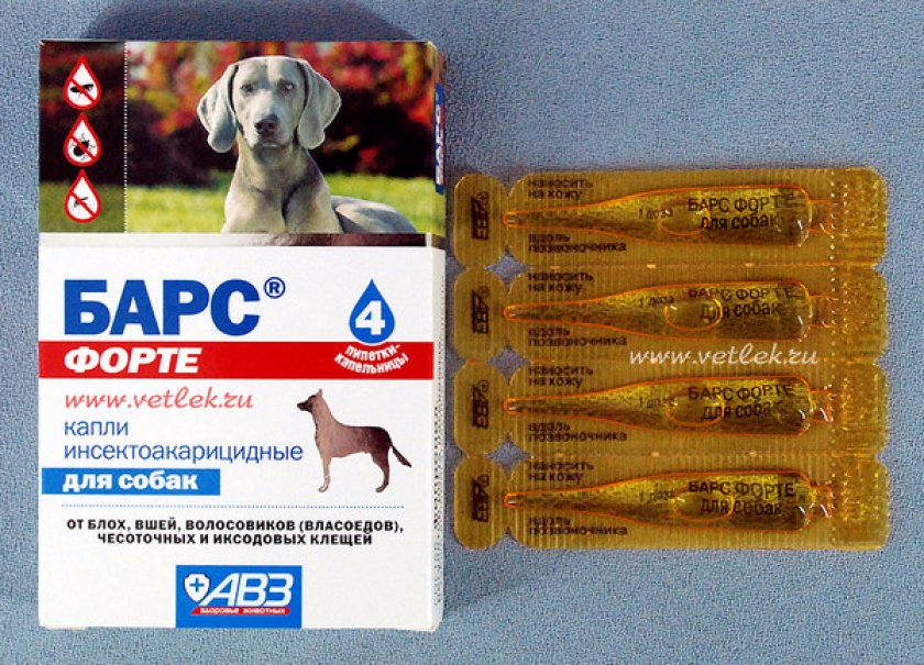 «Барс». Недорогой, но вполне эффективный препарат отечественного производства. Упаковка, включающая 4 пипетки, стоит примерно 2-3 доллара. Вместе с тем, такие капли могут провоцировать побочные явления в виде обильного слюноотделения и аллергии. В связи с этим его не стоит использовать для щенков до 3-месячного возраста.