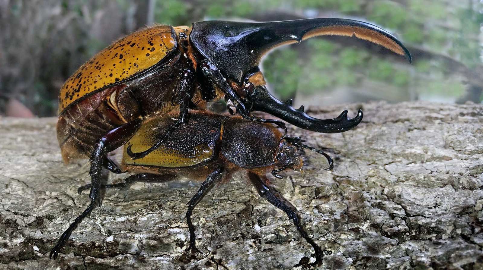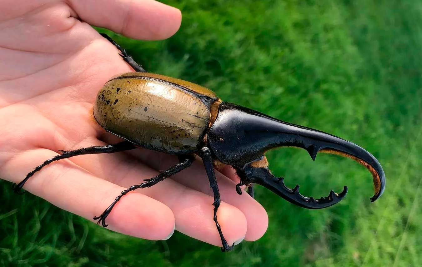Жук-геркулес – один из крупнейших жуков на планете. Максимальная длина тела, которая была задокументирована составляет 17 см. Эти жуки имеют крылья с довольно большим размахом, который составляет 22 см.