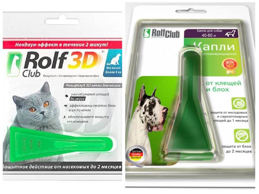 Капли, спрей и ошейники Рольф используют для собак при поражении иксодовыми и чесоточными клещами, блохами, власоедами, вшами и другими паразитирующими насекомыми. Также все формы могут использоваться для профилактики поражения эктопаразитами и для защиты от кровососущих насекомых.