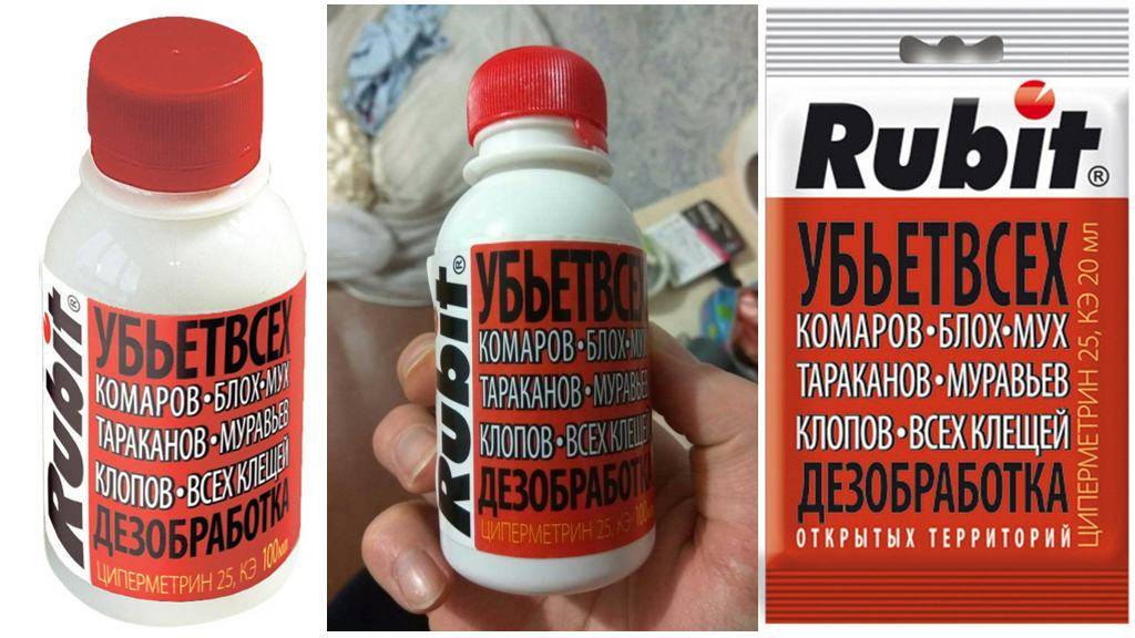 Для быстрого избавления от ползающих насекомых в доме поможет раствор Рубит Циперметрин. В продажу концентрат поступает в емкостях 100 мл. Он подходит для помещений, подвалов и открытого пространства. Действие препарата основано на проникновении активного вещества – циперметрина в организм вредителя, который замедляет работу нервных окончаний, приводит к параличу и смерти насекомых. Достоинства раствора: