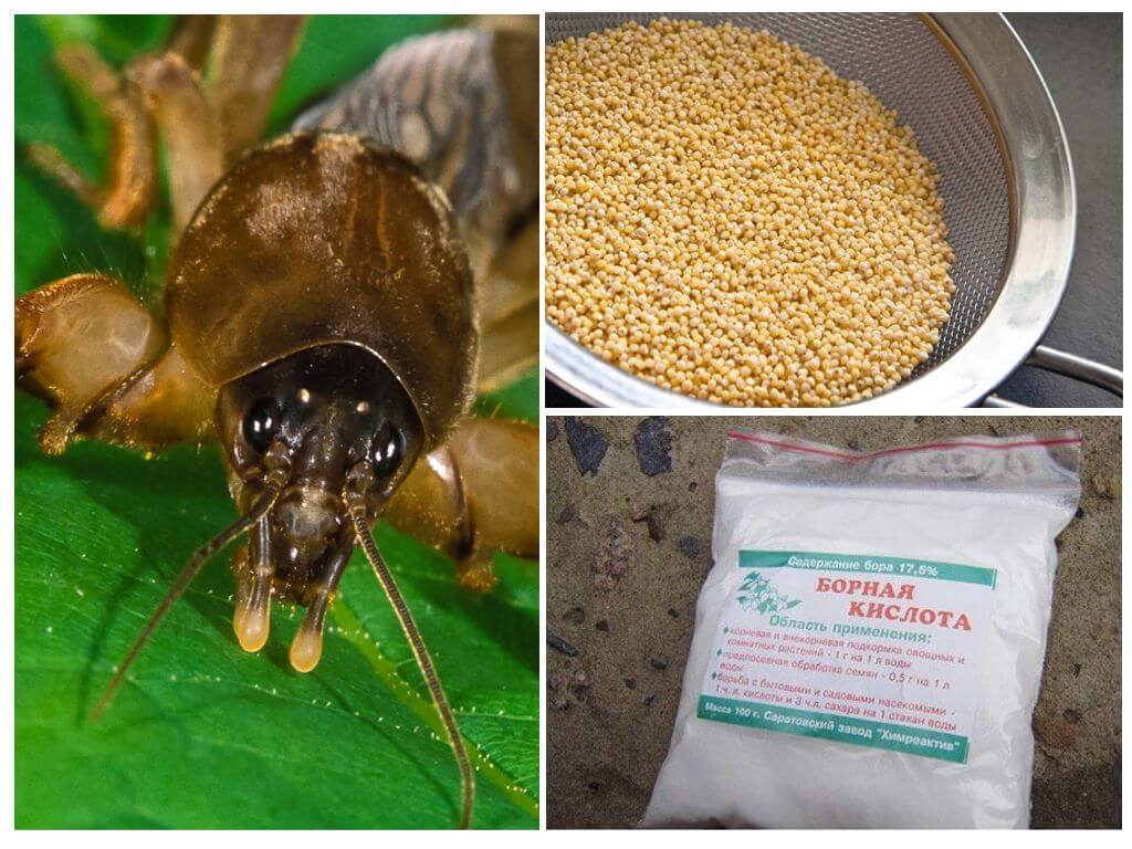 Готовят рассыпчатую кашу, смешивают с борной кислотой либо инсектицидом. Добавляют несколько ложек растительного масла. Этот запах любит медведка. Формируют небольшие шарики, вкапывают в землю, закладывают в норы, размещают на дне ловушки.