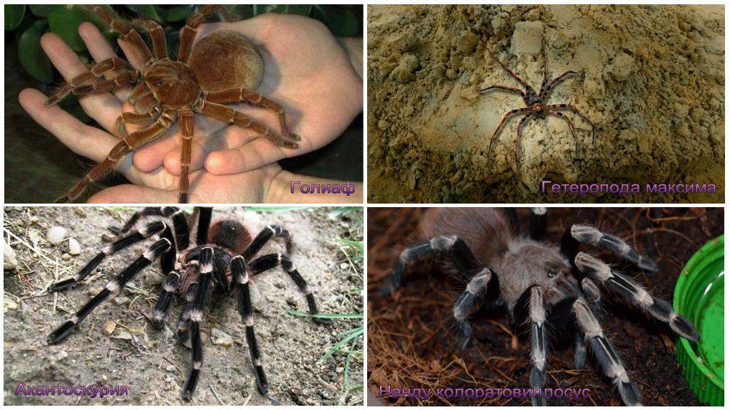 Эти животные представляют группу самых крупных пауков на планете, чемпионом среди которых считается паук голиаф. Его размеры просто поражают воображение – порядка 10 см, а размах лап порядка 28 см. Эти пауки отличаются еще и тем, что их тело покрыто густой шерстью красно-коричневых оттенков. Для человека этот монстр не опасен, а вот его опадающая щетина способна привести к различным аллергическим реакциям.