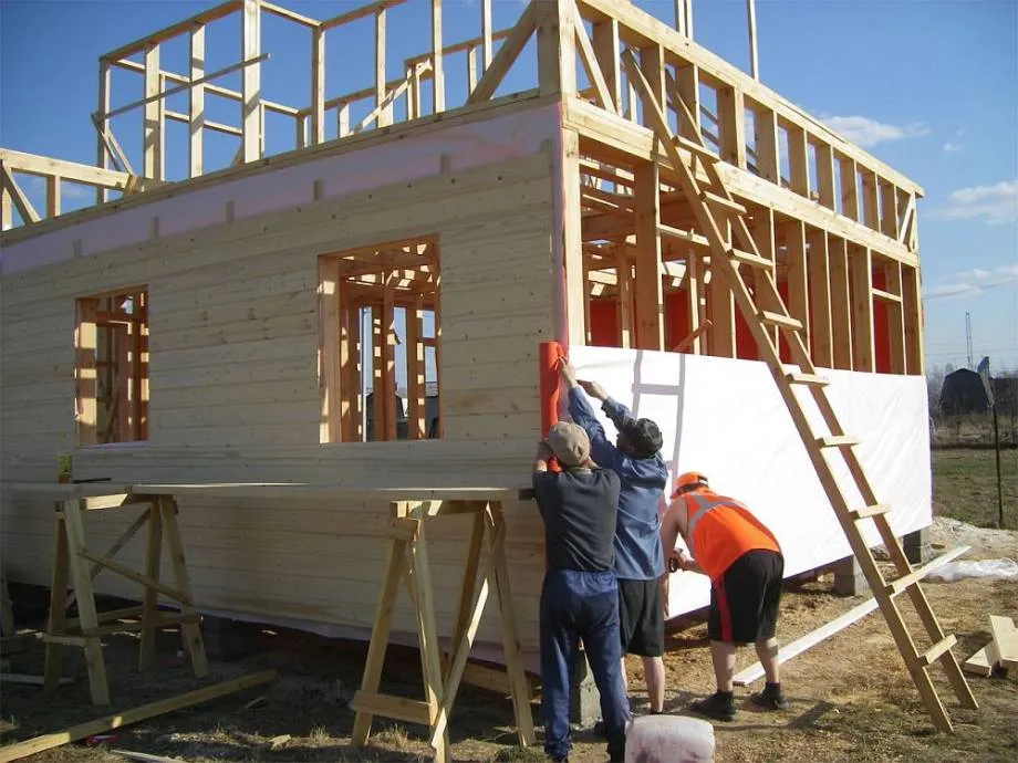 В процессе возведения каркасного дома строители используют народные методы.