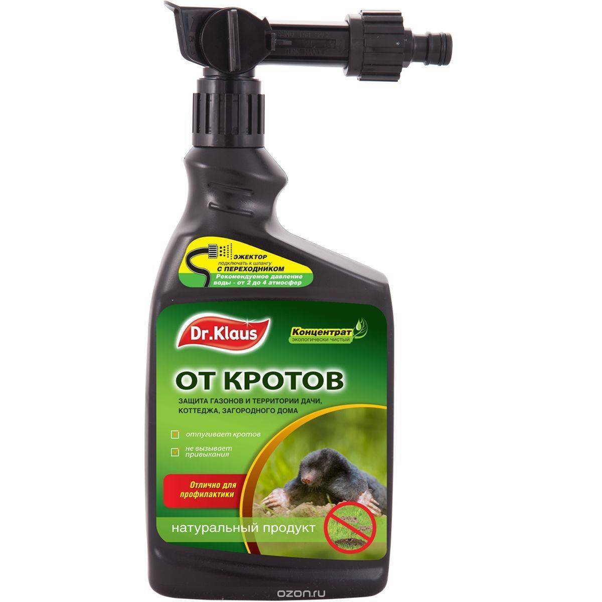 Если же все вышеперечисленные средства не помогли, остается прибегнуть к химическим препаратам, но только для отпугивания зверьков. Один из них «Эжектор концентрат Доктор Клаус от кротов». Его состав: