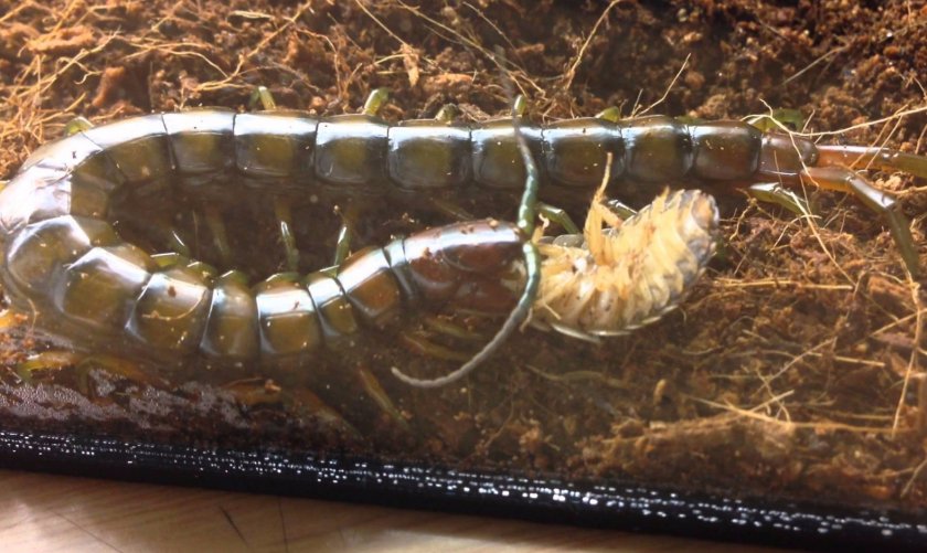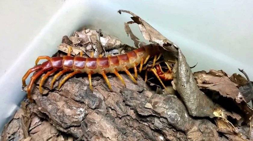- Обязательно избавиться от различных насекомых, которые входят в рацион питания сколопендры.