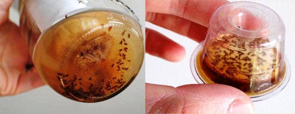 В любой контейнер наливается сок или нектар, которые действуют как приманка для насекомых.