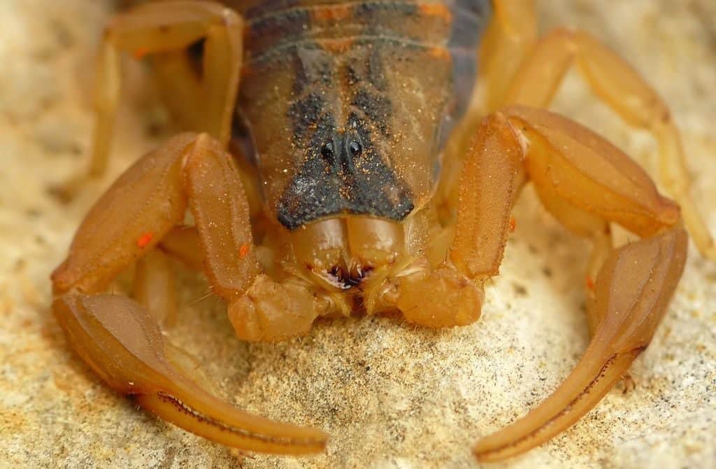 Возле рта расположены парные конечности, заменяющие особям челюсти. Остальные парные конечности расположены на нижней части брюшка и позволяют скорпионам быстро передвигаться по пескам и каменистой местности.
