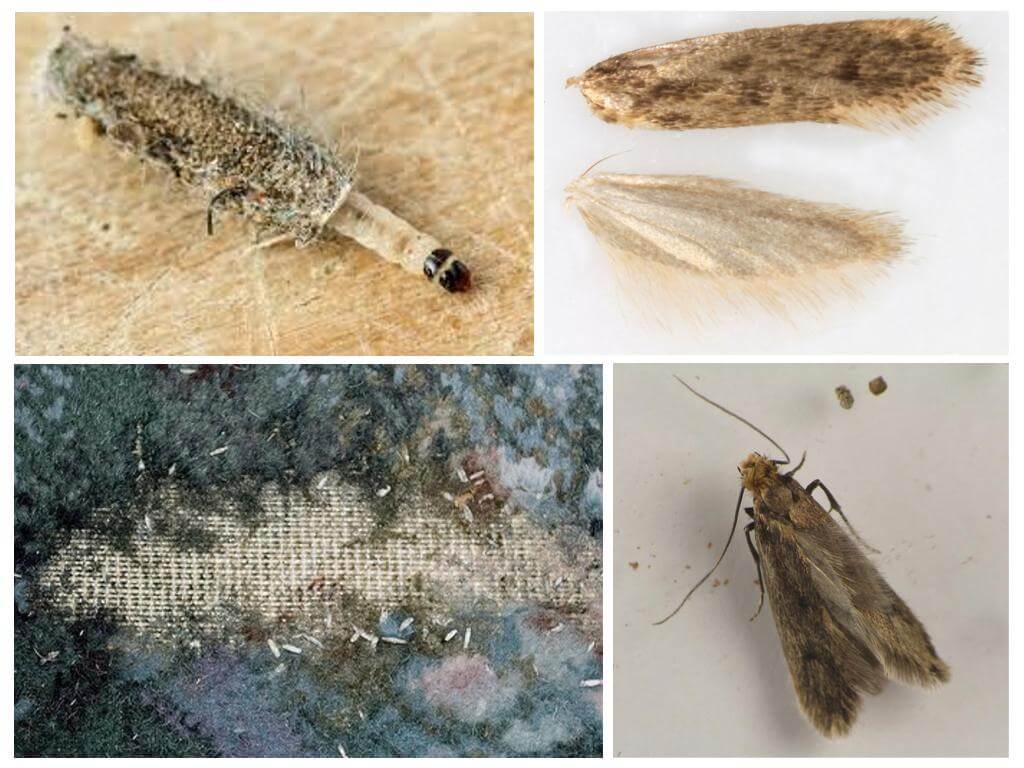 Вещевая моль заводится в одежде и питается натуральными тканями: мехом и шерстью. По размеру она немного меньше, чем пищевая. Логично предположить, если вы видите насекомых в комнате или шкафу – это вещевой вид паразита, если на кухне – кухонный.