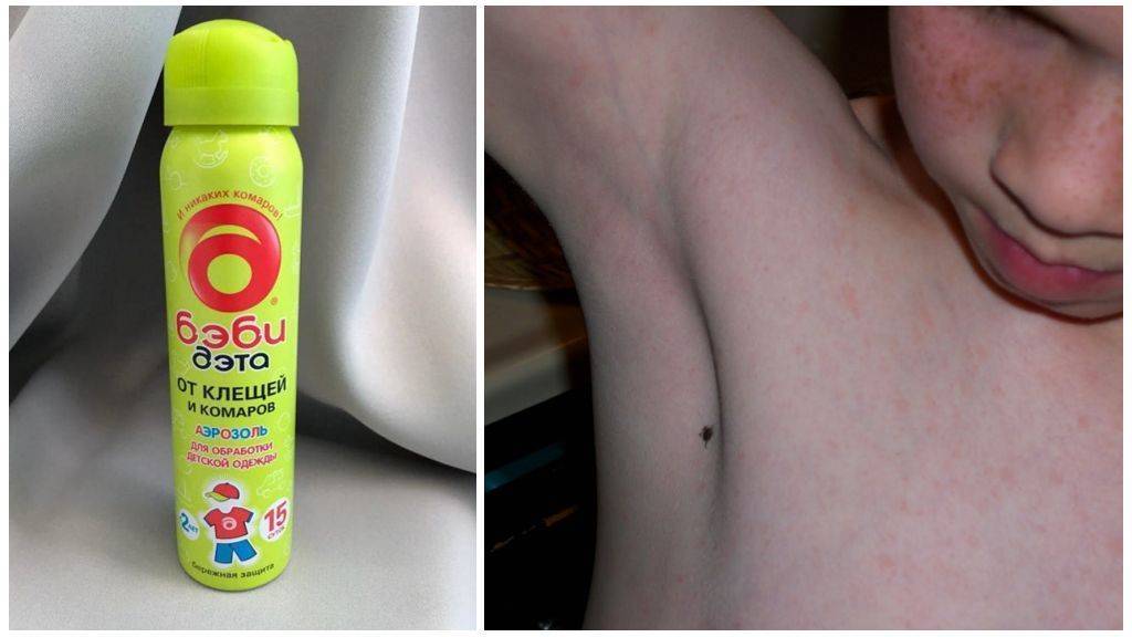 - аэрозоль «Бэби Дэта»: защищает от клещей во время выезда на природу. Наносят на одежду и снаряжение.