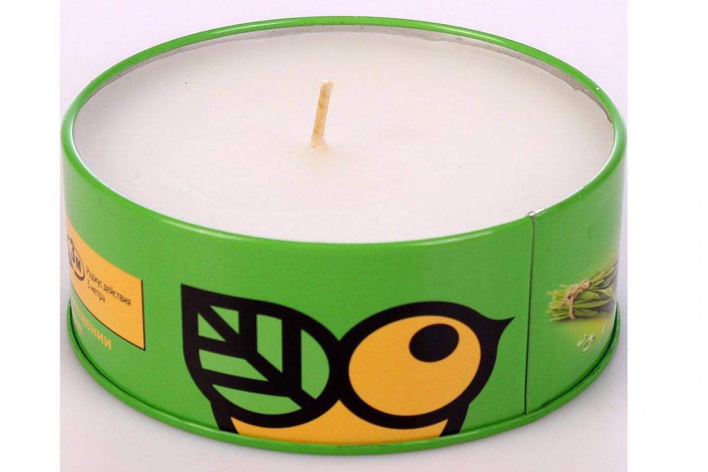 Представляет собой свечу с фитилем, который поджигается. Когда фитиль тлеем свеча растает и начинает выделять активные вещества, которые очищают территорию от комаров. Основным компонентов выступает масло цитронеллы, в концентрации 3%. Вещество относится к натуральным веществам.