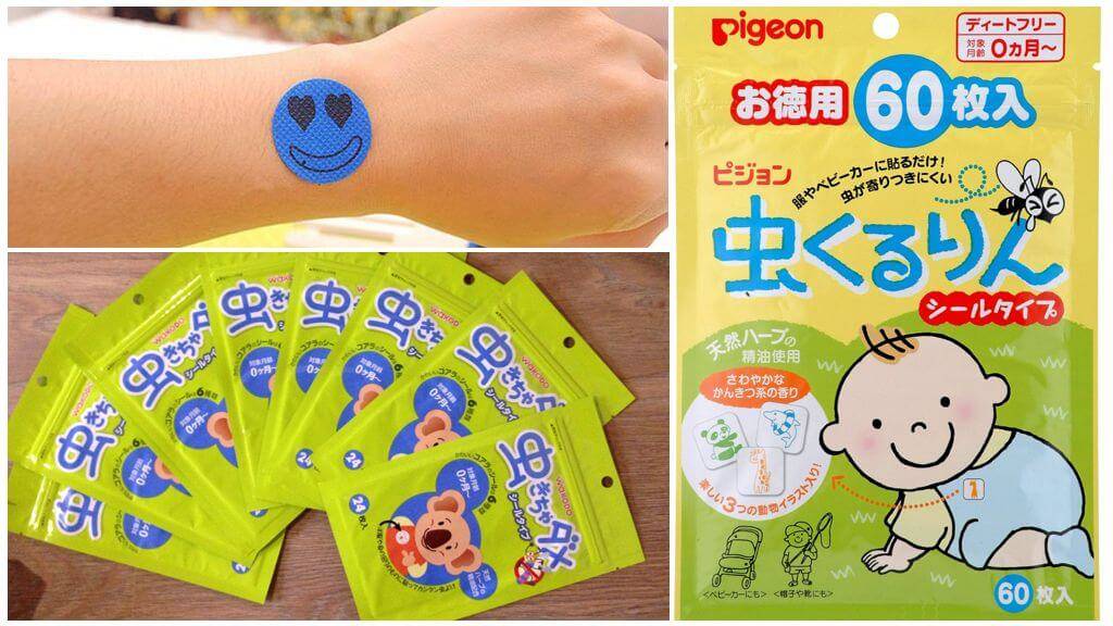 - Pigeon выпускается японской компанией. В состав изделия входят натуральные масла растений. Средство подходит даже для новорожденных малышей. В одной упаковке 60 наклеек. Цена набора 800 рублей.