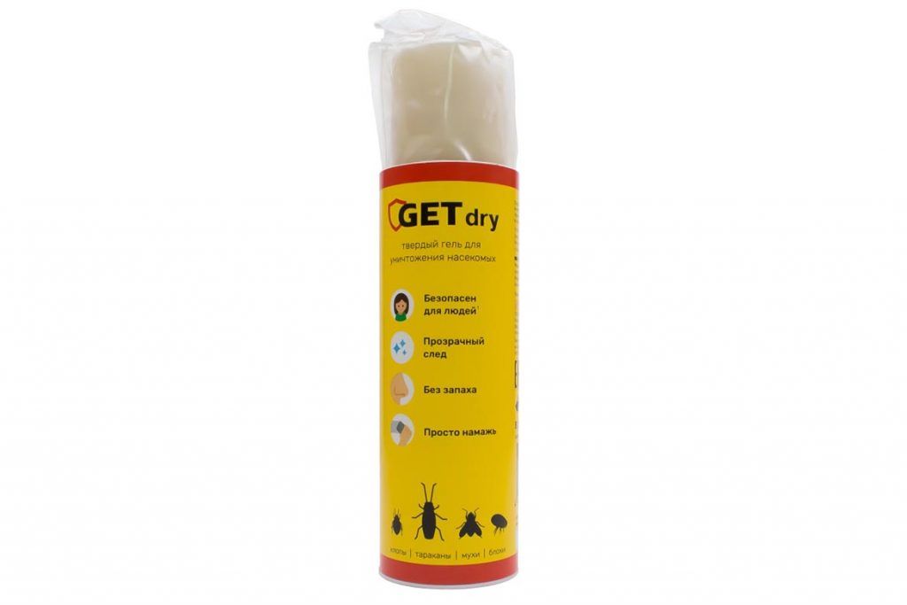 Инсектицидный препарат твердой консистенции в виде карандаша. С его помощью хорошо натирать поверхности, впитывающие влагу: древесину, бетон, ворс, побелку, ткань. Он хорошо удерживается на нанесенной области, образуя тонкую пленку, уничтожающую тараканов. Достоинства GET Dry: