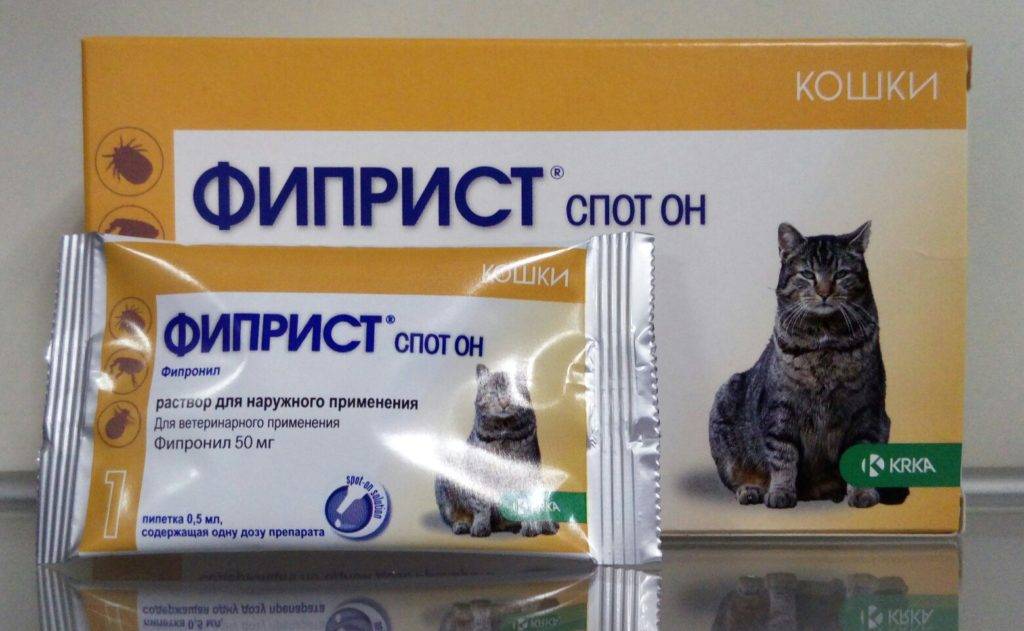 - Фиприст спот-он. Инсектоакарицидные капли на основе фипронила. Несмотря на то, что лечение котят до 8-недельного возраста запрещено, их можно использовать для обработки беременных и лактирующих кошек. Препарат не оказывает тератогенного влияния. Цена – 250–350 руб.
