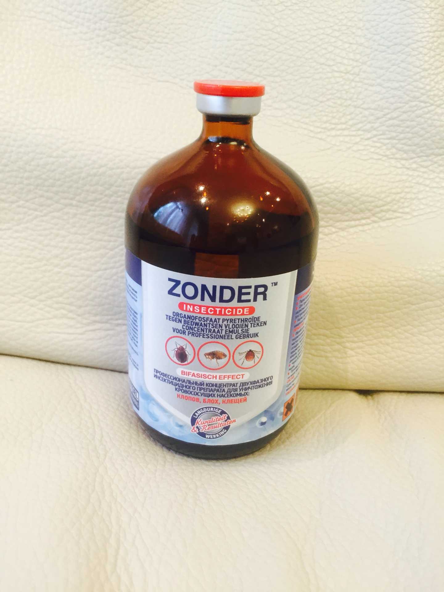 Зондер – голландский инсектицид, направленный на борьбу с клопами и прочими синантропными насекомыми. Относится к профессиональным средствам, однако при соблюдении мер безопасности разрешен для использования в домашних условиях. Его главное преимущество – уникальный состав, основанный на комбинации сразу нескольких активных компонентов. Также для усиления эффекта производителем были добавлены синергисты (вещества, усиливающие токсичность других). Средство Зондер представлено в виде эмульсии светло-чайного цвета со специфическим запахом. Не оставляет пятен и разводов на поверхностях.
