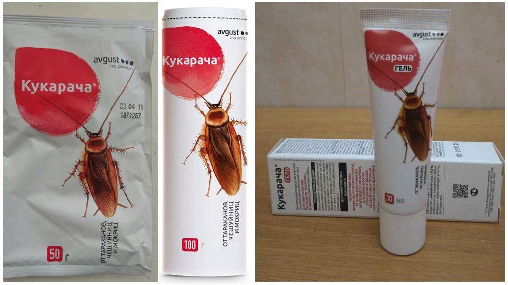 Средство произведено в России, обладает широким спектром действия и выпускается в виде порошков, гелей и эмульсий. Как указано на этикетке, препарат Кукарача применяется для уничтожения фактически любых видов вредных насекомых.