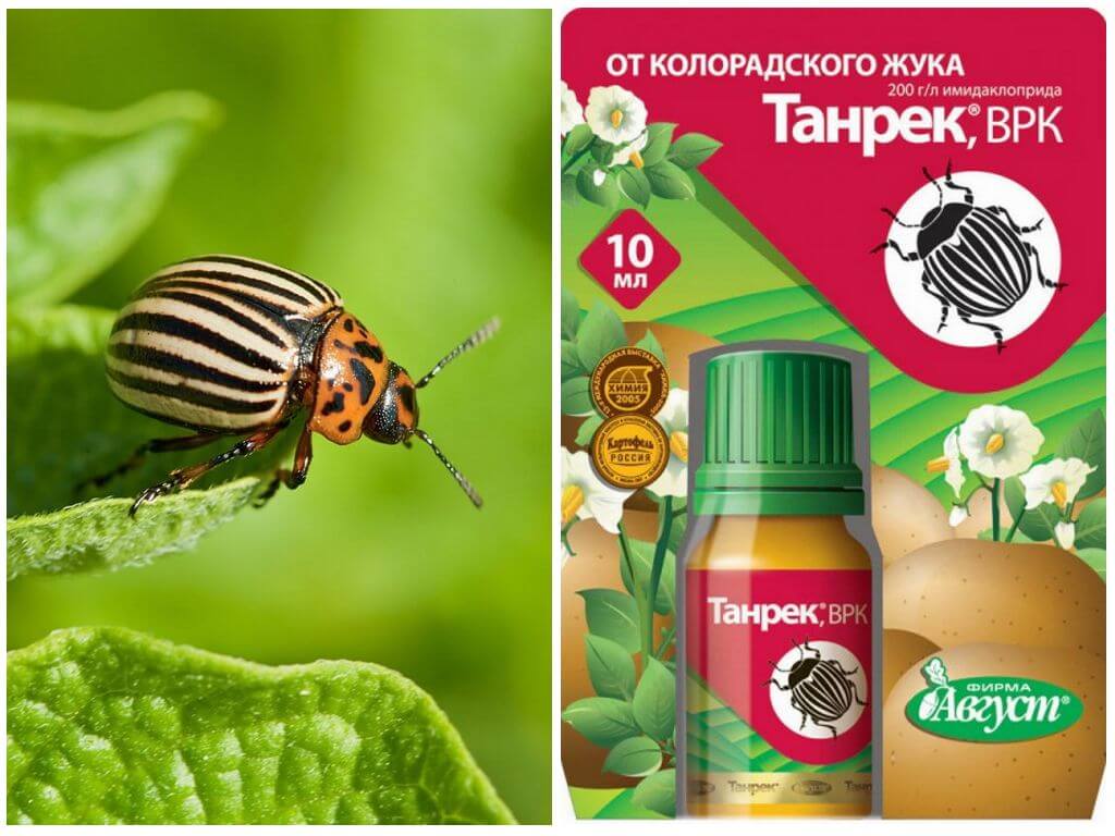 На посадках картофеля Танрек от колорадского жука применяют против всех генераций насекомого. Готовят раствор, растворяя в ведре один миллилитр средства, расходуют по пять литров на сотку. До копки клубней выжидают не менее 20 дней.
