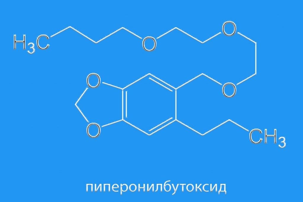 Этот компонент не проявляет инсектицидную активность. Значит, паразитам он не причиняет вреда. Однако вещество часто используется при производстве инсектицидных средств, что обусловлено его способностью усиливать действие отравляющих веществ. Пиперонилбутоксид всегда применяется в качестве вспомогательного компонента, входит в состав различных комбинаций инсектицидов.