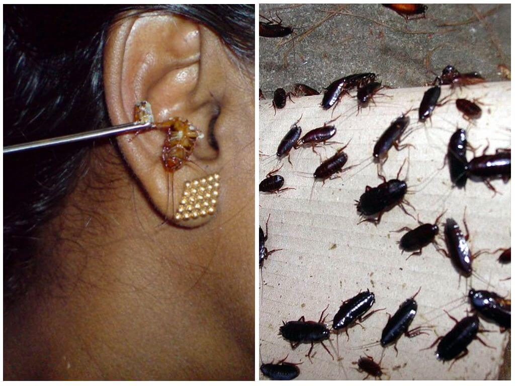 Тараканы являются самыми распространенными насекомыми, которые могут попасть в ухо, нос или любое другое отверстие в вашем теле. В интернете есть факты, что, например, в течение двух лет южноафриканская больница вытащила из ушей 24 насекомых. Десять из них были немецкими тараканами, за ними следовали восемь мух, три жука, клещ, жук-убийца и сильно изуродованная моль.