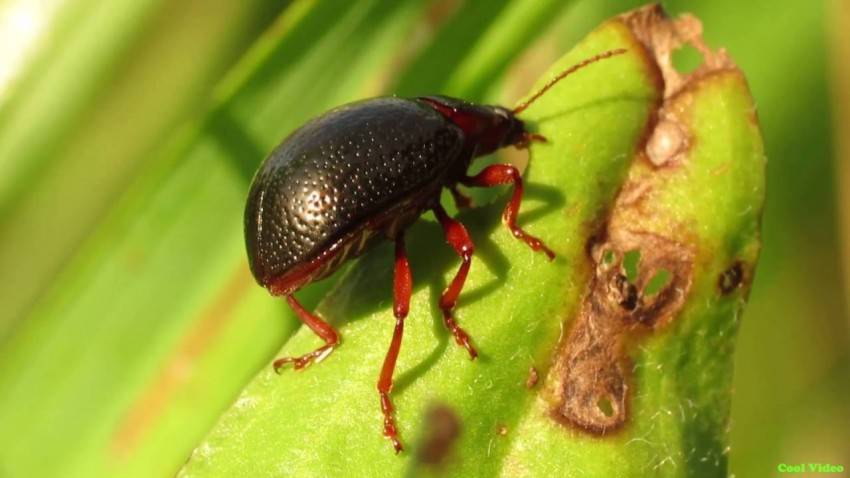 Появившиеся из них личинки наносят вред листьям, обгрызая их по краям. Если условия благоприятствуют для жизнедеятельности насекомых, то кусты калины могут остаться практически без листьев.