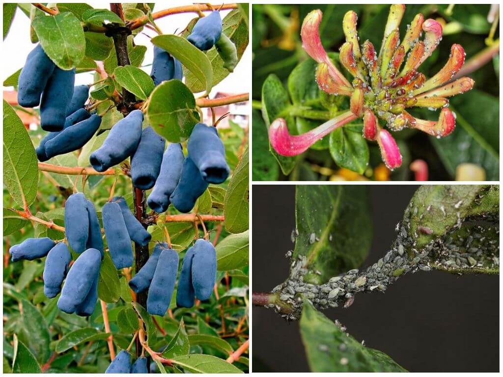 После того как жимолость зацвела, с тлей придется бороться народные средства. Большинство ядохимикатов нестойкие и смываются сильным дождем. Но некоторые виды инсектицидов проникают в листья и плоды и остаются там в течение длительного времени. Это помогает уничтожать паразитов без постоянной обработки кустов после каждого ливня, но может вызвать отравление при поедании плодов с химикатами.