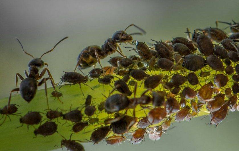 Если на пораженном тлей кусте бегают муравьи, божьи коровки не помогут в борьбе с вредителем. Муравьиная семья защищает паразитов, так как питается соком, который они выделяют. Муравьи прогоняют божьих коровок и других полезных насекомых.