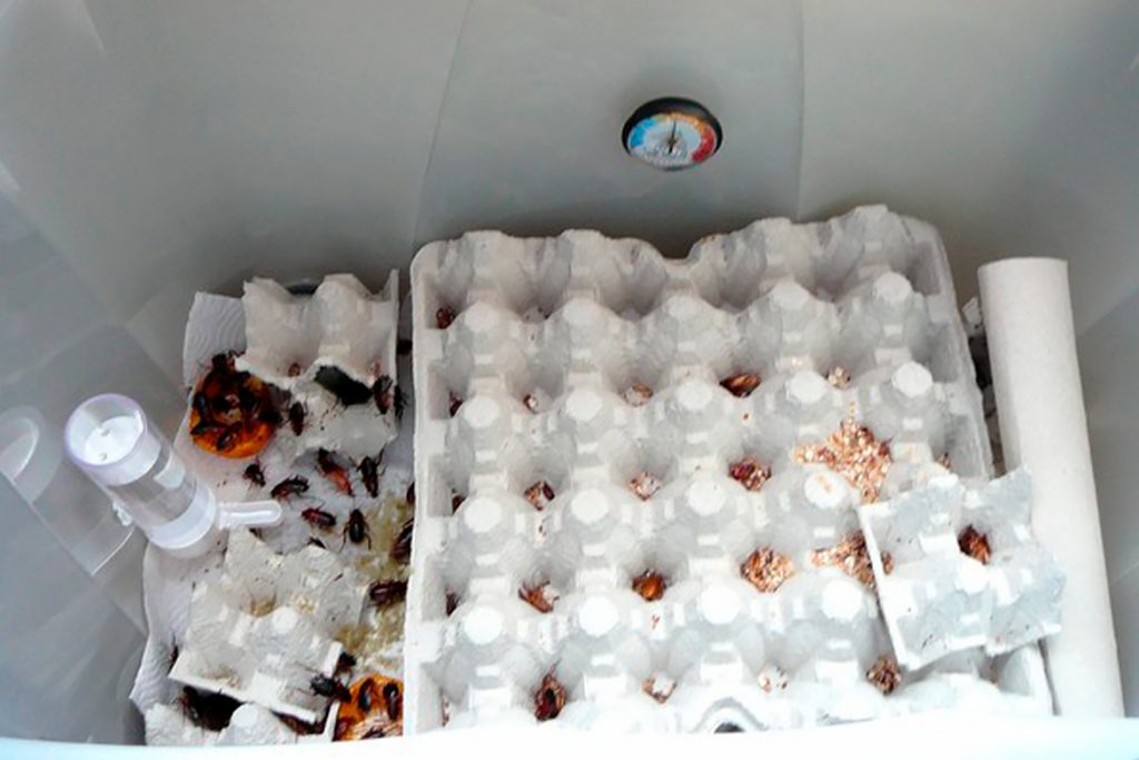 - Рекомендуется облицовывать дно инсектария мхом, чтобы самкам было удобно укладывать оотеку. Большое значение имеет температура воздуха: если она ниже 27 ° С, созревание яйца будет медленнее. Тараканы, только что появившиеся из яиц, первые несколько дней адаптируются и ничего не едят.