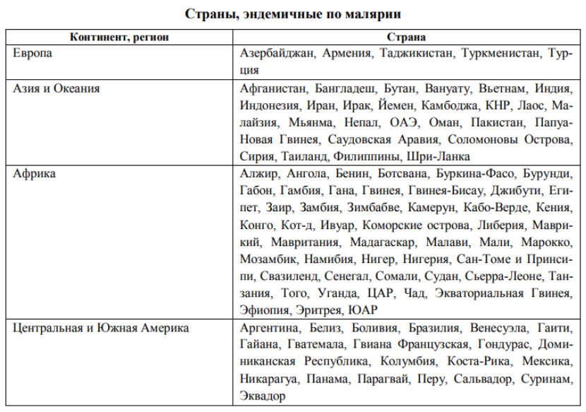 Малярийный комар считается менее опасным в тех странах и регионах, где отсутствуют вспышки заболеваний.