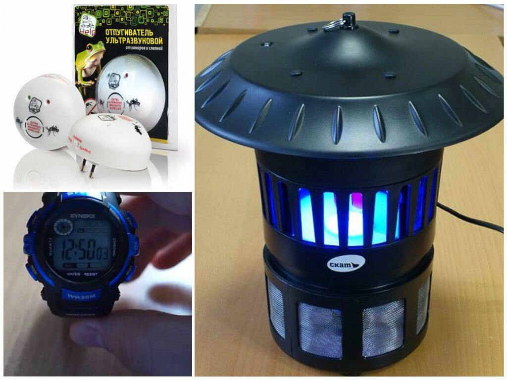 Электронное устройство, которое вырабатывает ультразвук, представлено в виде часов. Оно подходит для периодической носки. Аппарат пользуется популярностью среди грибников, а также рыбаков и охотников. Все потому, что корпус для этого оборудования подготовлен из сырья, которое не пропускает влагу. Поскольку от аппарата не исходит неприятный аромат, то он не наносит вред здоровью домашним питомцам и людям. Радиус воздействия – не менее 4 метров.