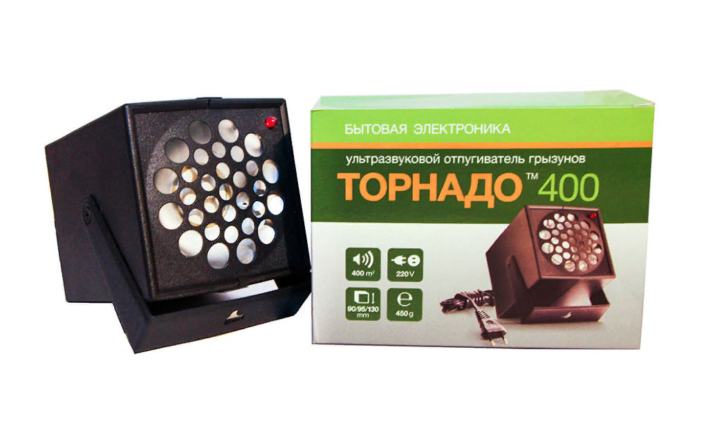 Мощный ультразвуковой отпугиватель крыс и мышей Торнадо 400 – отличный выбор для дома. Устройство оснащено одним излучателем, мощности которого достаточно для работы в квартире или небольшом доме. Чтобы грызуны не смогли адаптироваться к звуку прибора, в нем происходит автоматическое переключение частоты ультразвука. Таким образом, вредители, не сумев приспособиться к таким условиям, в большинстве случаев покинут территорию. За счет правильно подобранного диапазона излучения прибор безвреден для людей и не издает звуков при работе.