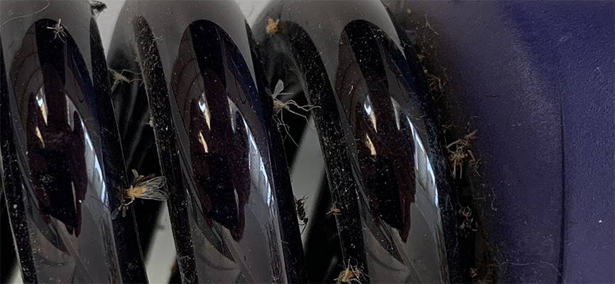 При попадании внутрь насекомые начинают хаотично кружиться вокруг УФ лампы и под мощными лучами просто высыхают от обезвоживания. Происходит это буквально за несколько минут. Мелкие насекомые, такие как комары, мошки, гнус, практически испаряются, оставляя только крылья.