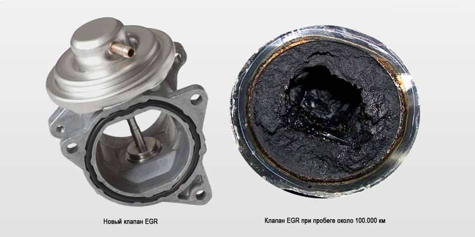 В запущенных случаях (когда клапан «закис» под слоем сажи и не закрывается) поступление отработанных газов в рабочую зону становится постоянным. Возникают признаки неисправности: падают динамика разгона и мощность двигателя авто, увеличивается сажеобразование в выхлопных газах, забивается сажевый фильтр (DPF), снижается ресурс катализатора.
