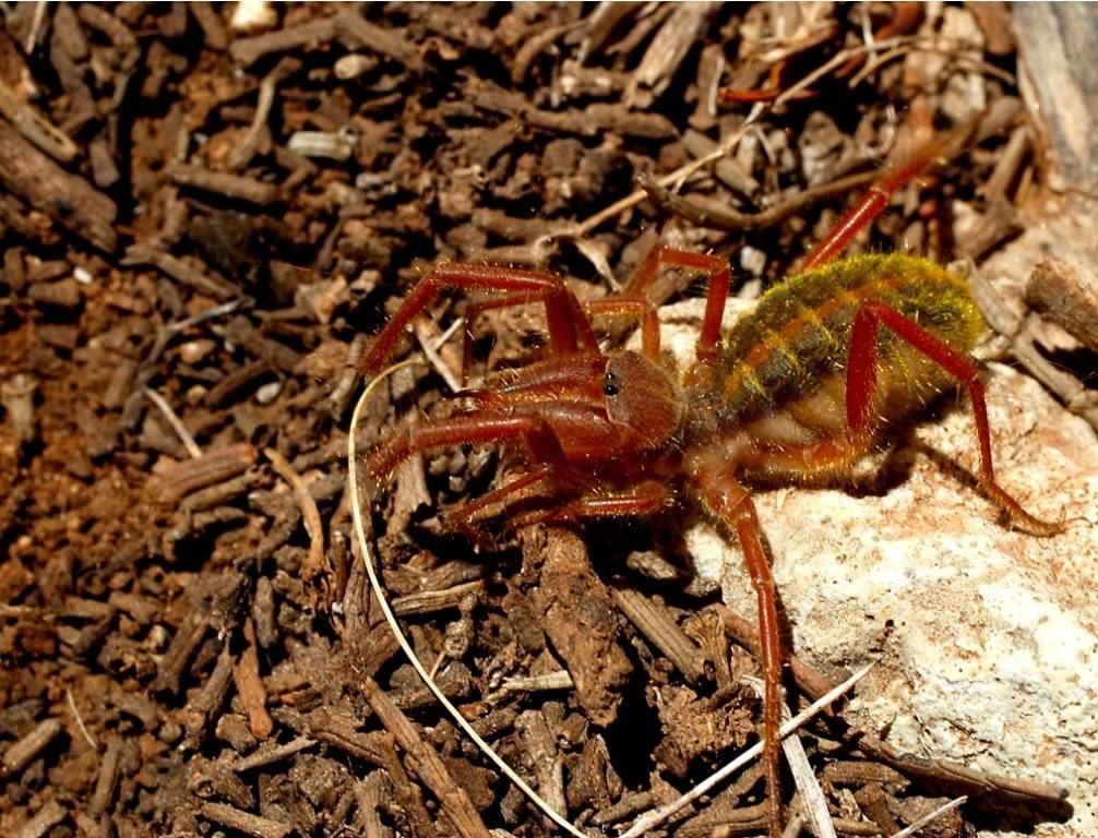 Это самый большой отшельник. Арахнид отличается коричневым цветом. Его лапки и брюхо покрыты коротким волосяным покровом. У хищника имеется 6 пар глаз.
