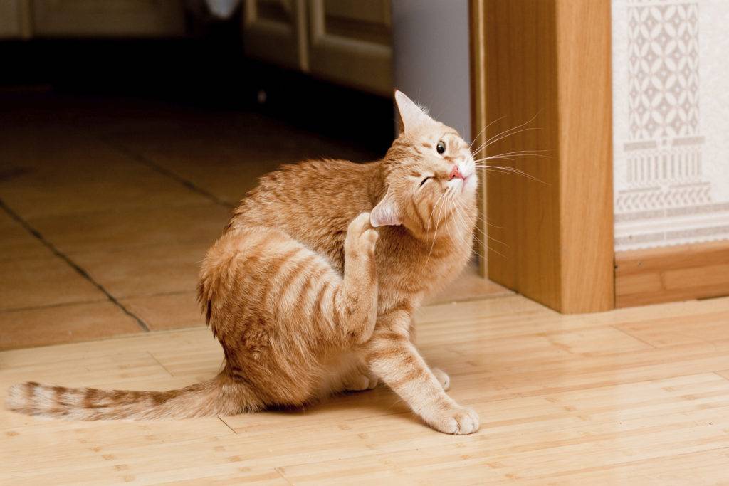 Зуд у кота – один из признаков наличия паразитов.