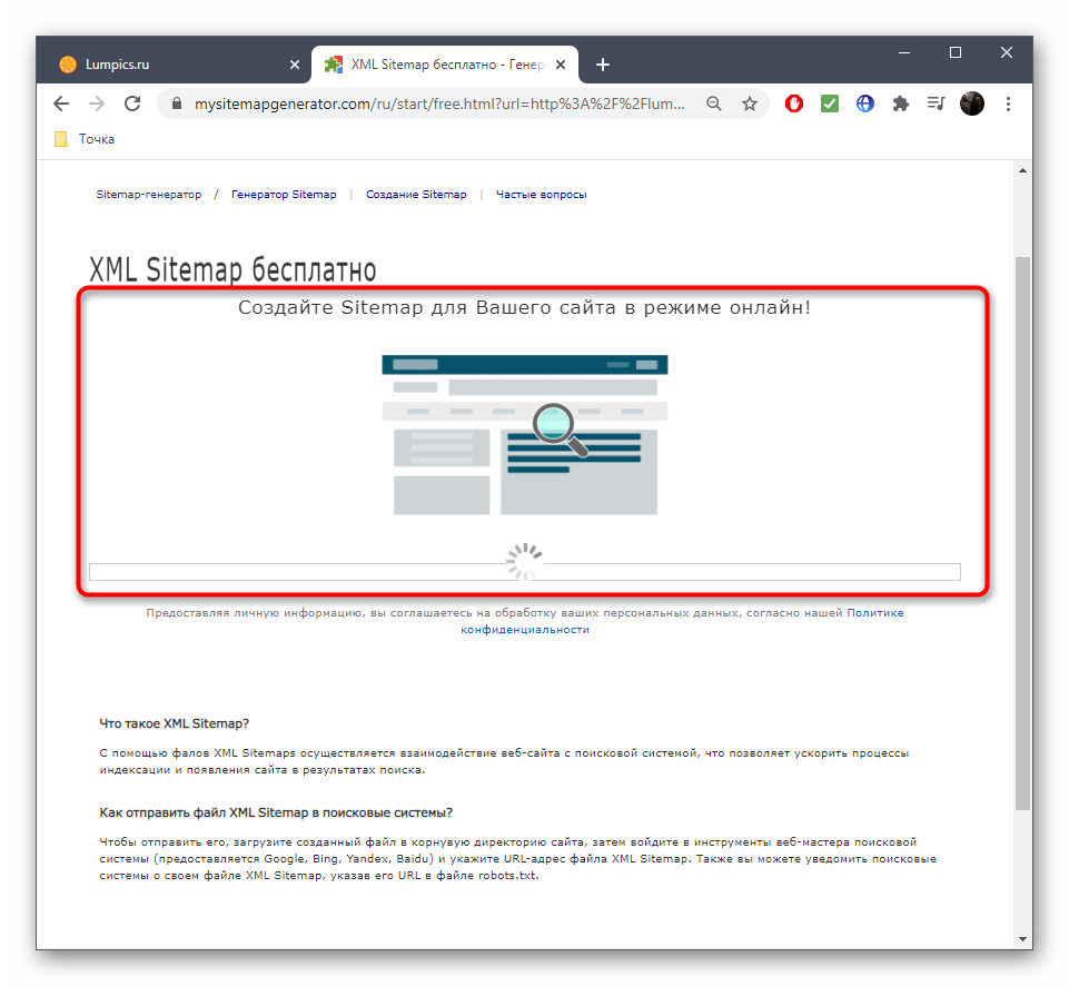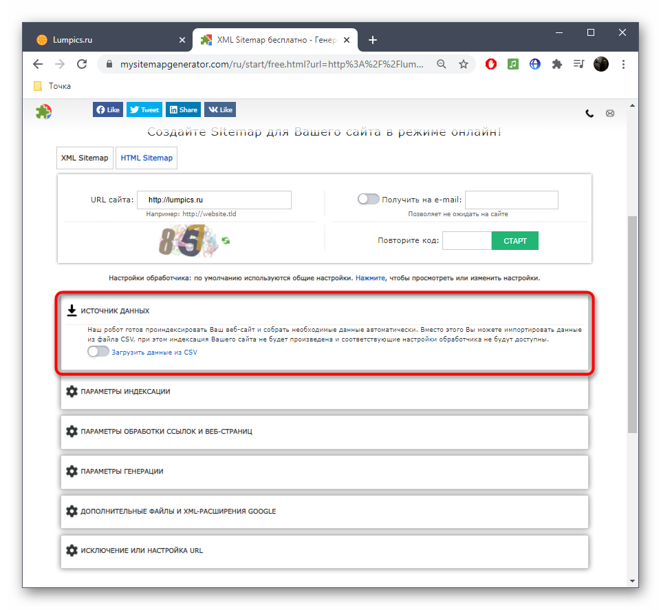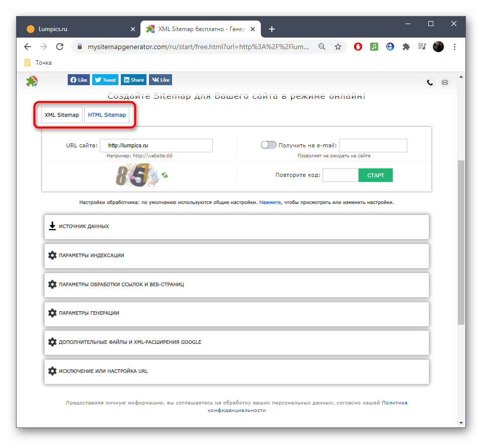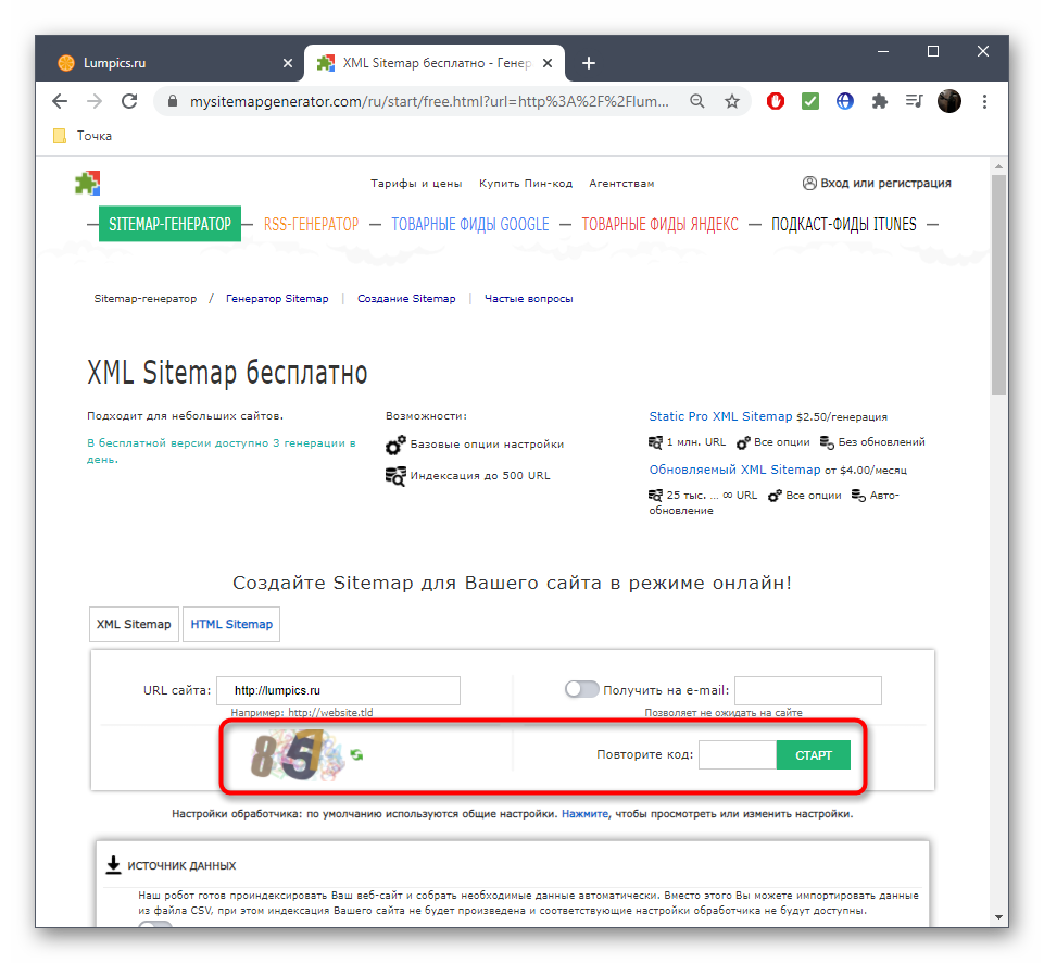 Данный сервис позволяет сгенерировать карту для сайта размером не более 500 страниц. Существуют и другие аналоги, работающие по такому же принципу.