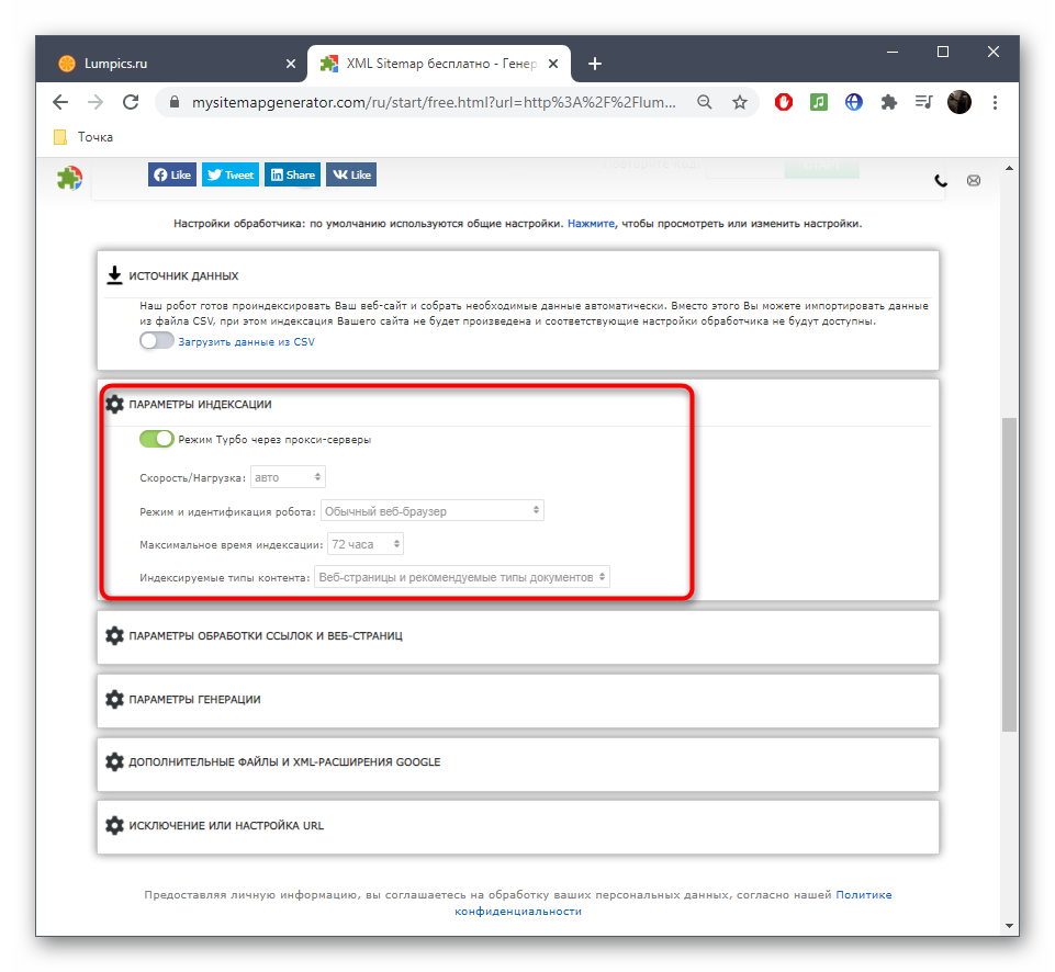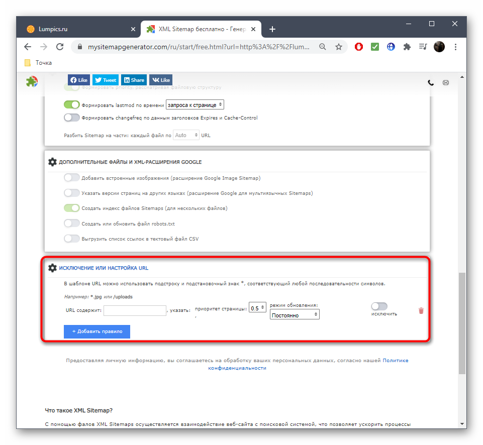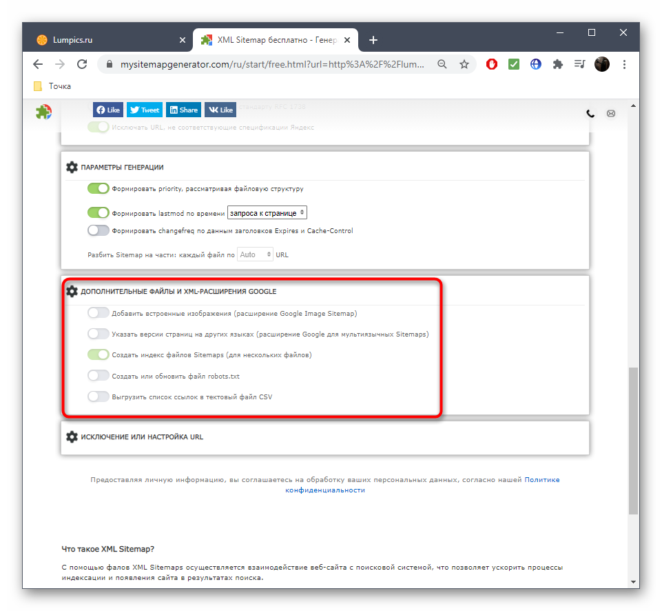 - Настраиваем то, что должно отображаться в файле для поисковых роботов (стрелкой отмечен мультимедийный контент: фото, видео).