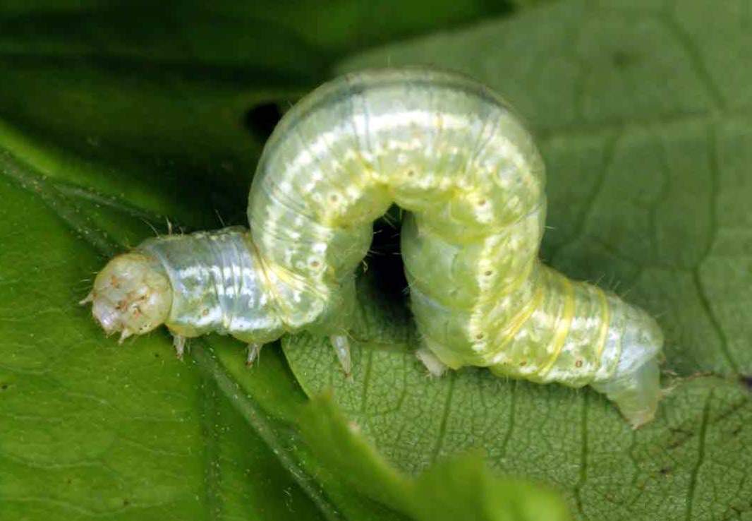 Ущерб растениям наносят также гусеницы пядениц, на спине насекомых находятся возвышения, визуально напоминающие бородавки, центральная часть — зеленого цвета, на концах расположены бурые пятна.