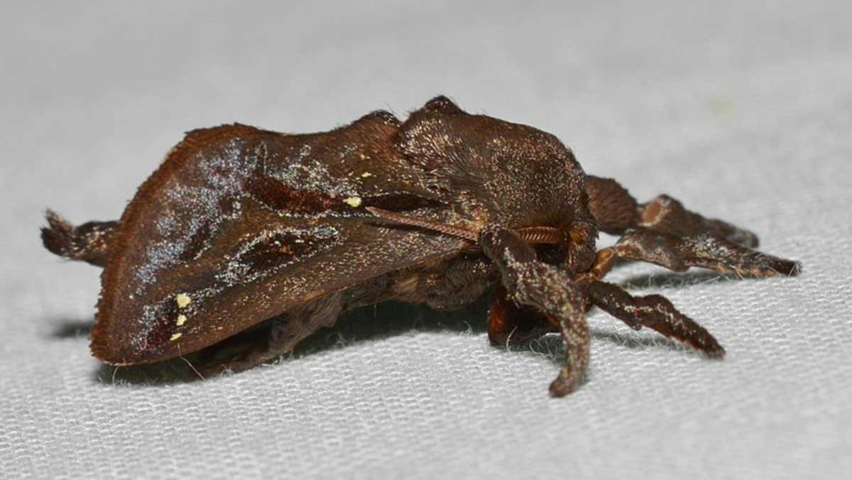 Взрослая моль: Взрослые особи маленькие и крепкие с темно-коричневыми крыльями.