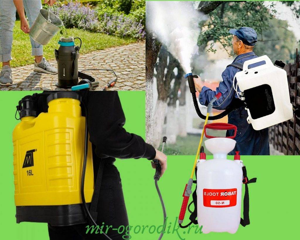 - Способ переноски: ручной – для небольших теплиц, растений в квартире. Для сада и огорода можно взять наплечные модели, для больших площадей – ранцевые или на колесиках.